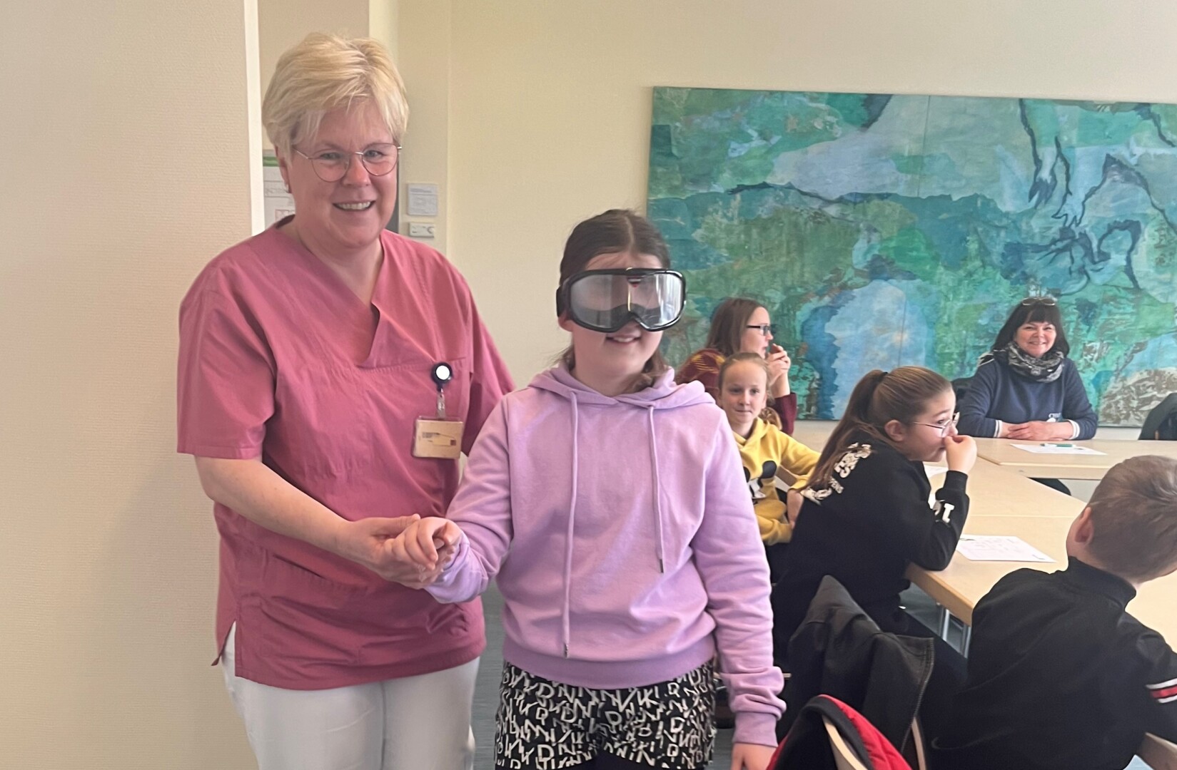 Wie gefährlich Drogen sind und wie sie sich auf das Sehen auswirken, wurde den Kindern beim Besuch in der Klinik ebenfalls nahe gebracht. Ein Blick durch die Simulationsbrille zeigte den Mädchen und Jungen eindrucksvoll, wie eingeschränkt Reaktions- und Sehfähigkeit nach Rauschmittelkonsum sind.