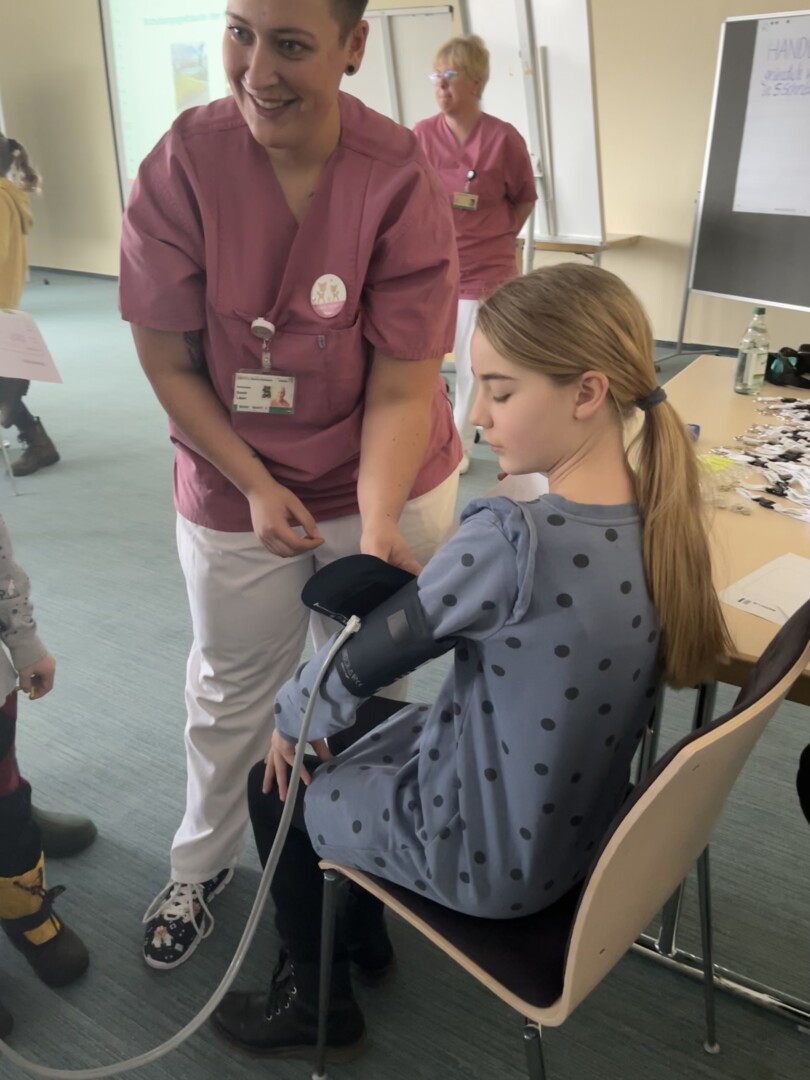 Gegenseitiges Blutdruck-, Puls- und Temperaturmessen sowie Hörtests waren ebenfalls Teil des bunten Projekttags im Müritz-Klinikum.