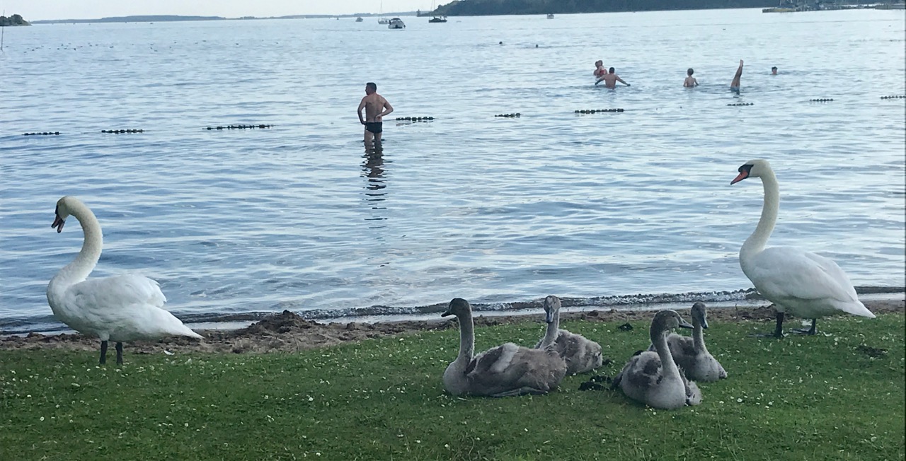 Bei diesem Wetter genießt auch Familie Schwan das Strandleben am Volksbad.