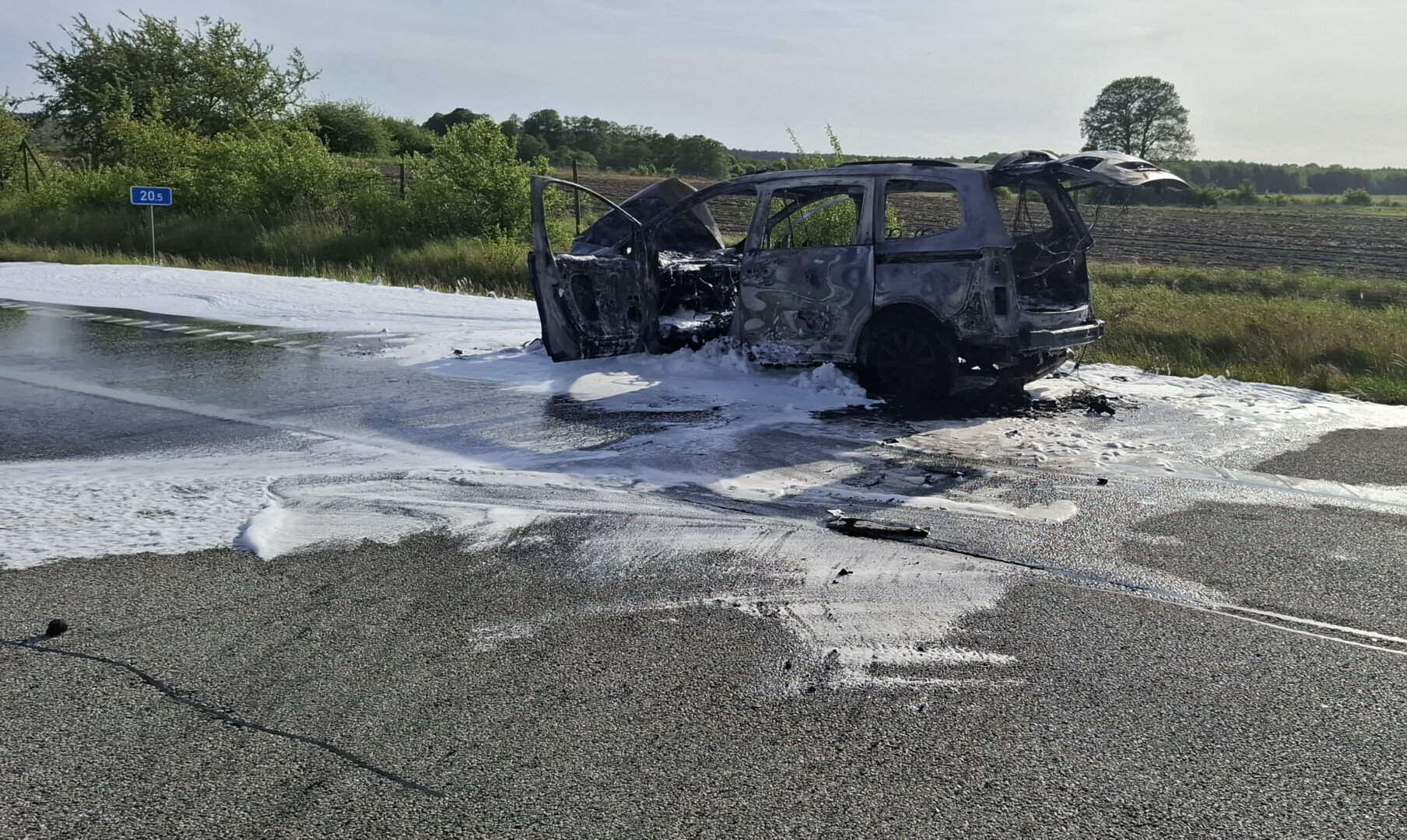 Während der Löscharbeiten musste die Fahrbahn in Richtung Berlin vollständig gesperrt werden. Der PKW brannte vollständig aus, es entstand ein Totalschaden. Zudem wurde die Fahrbahndecke auf einer Fläche von rund zehn Quadratmetern beschädigt. Der Gesamtschaden wird auf etwa 15.000 Euro geschätzt.