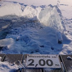 „Ich hoffe, das war es jetzt mit diesem Winter“, erklärt Felgner. In den nächsten Tagen soll es aber weiter Frost geben, nur verhindert die idyllisch aussehende dicke Schneedecke ein weiter starkes Eiswachstum.