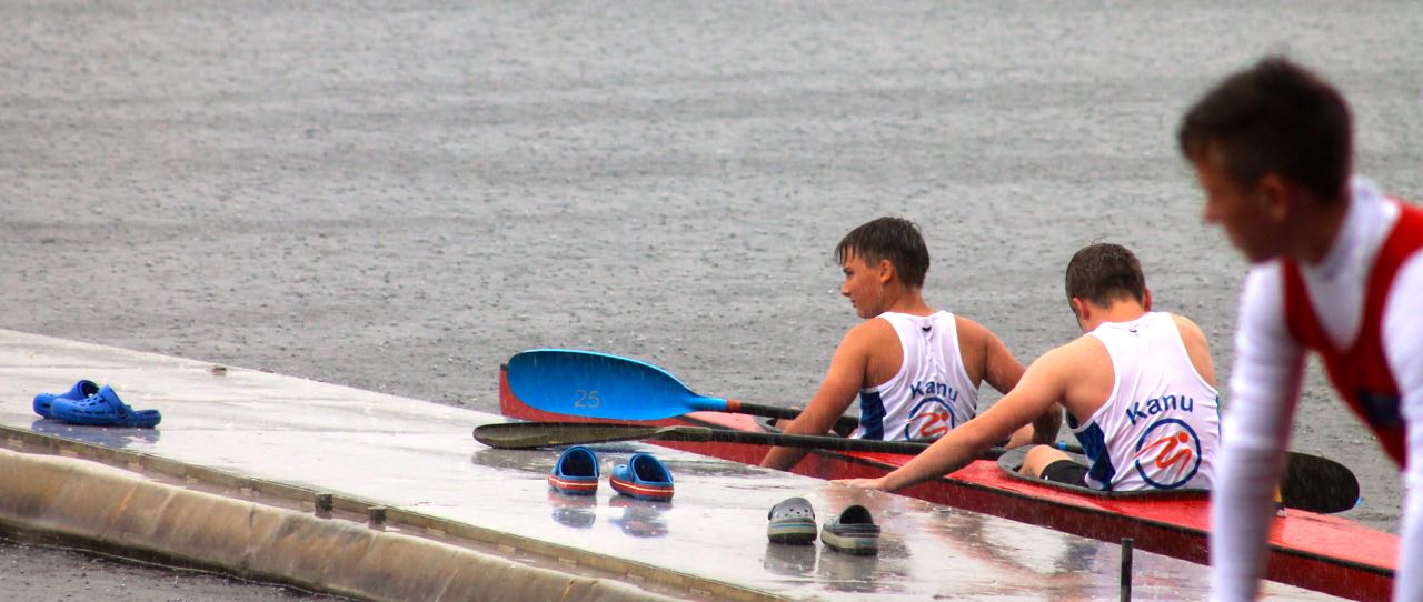 Zwischendurch gab es am Sonnabend auch einen stundenlangen Platzregen, trotzdem ging es aufs Wasser. Hier zeigten die Kids großes Durchhaltevermögen. Keiner versteckte sich im Zelt – dort regnete es schließlich auch durch…