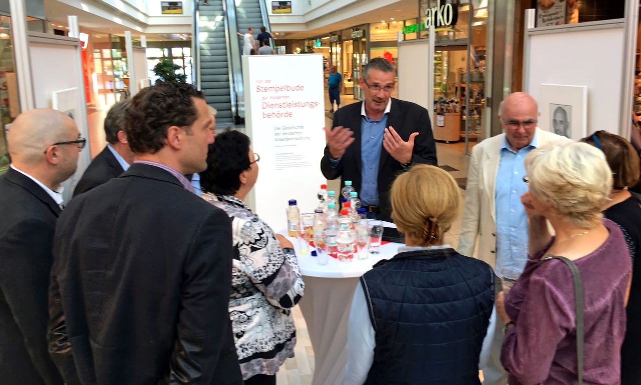 Noch bis zum 28. Juli räsentiert die Bundesagentur für Arbeit die Ausstellung „Von der Stempelbude zur modernen Dienstleistungsbehörde“ zu ihrer Geschichte im Marktplatzcenter Neubrandenburg. Die Deutsche Arbeitsverwaltung hat über viele Jahrzehnte bewiesen, dass sie Krisen und Umbrüche meistern kann. Selten kam der Wandel einfach über sie, oft hat sie ihn aktiv und vorausschauend gestaltet.
