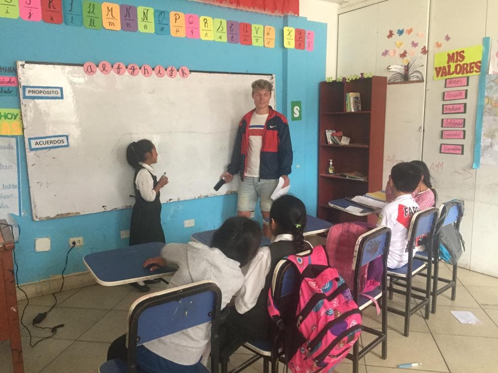 Jetzt lebe ich schon seit zwei Monaten am anderen Ende der Welt – in der Kleinstadt Abancay, in den peruanischen Anden. Ich arbeite hier an einer kleinen Schule und gebe Englischunterricht, denn Englisch spricht hier so gut wie niemand. Ein schwieriges Unterfangen, da ich noch ein sehr gebrochenes Spanisch spreche und die Kinder ihre ersten Wörter in einer Fremdsprache lernen. Man beginnt klein mit Zahlen, Farben oder Tiernamen. Die Schüler kommen oft aus schwierigen familiären Situationen und können sich deshalb keine besonders gute Schulbildung leisten.