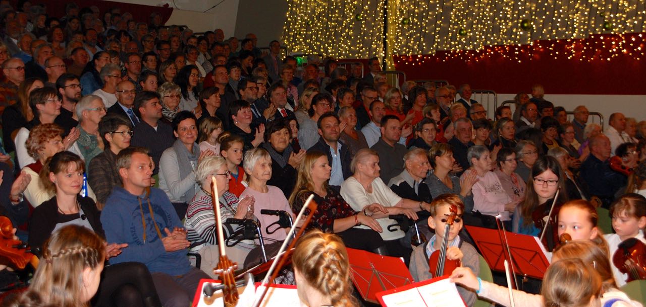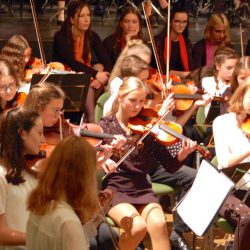 Das Jugendsinfonieorchester unter Dirigent Frank Philipp befindet sich gerade im Umbruch. Viele Geigerinnen und Cellisten sind aus Altersgründen ausgeschieden, jüngere Musikerinnen rückten auf und noch jüngere Talente kamen neu herein, so dass etwa 45 junge Frauen und Männer dazu gehören. Zusammen mit dem „Klangfarben-Chor“ und den „Junior Strings“ – also jungen Streichern, die besonders viel Lampenfieber hatten – begeisterten sie das Publikum.