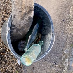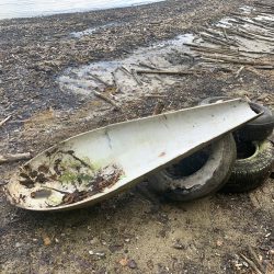 Zu den Fundstücken gehörte auch alte Pinkeltöpfe, einige Autoreifen, ein Schneeschieber, der sogar noch zu gebrauchen sein dürfte, ein altes Bootslenkrad, ein Anker, jede Menge Eisenteile, ein Hufeisen, das natürlich nicht mit auf den Müll kam, sowie Scherben über Scherben.