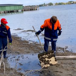 „Das ist ja wirklich schrecklich.“ Diesen Satz hat man heute Vormittag in Waren mehrfach gehört. Und damit war nicht nur der viele Müll gemeint, den die freiwilligen Helfer gesammelt haben, sondern meistens der extrem niedrige Wasserstand. „Wenn man mal fix vorbei fährt, registriert man das gar nicht so, aber wenn ich jetzt hier stehte, wo normalerweise mindestens po-hoch Wasser ist, finde ich das sehr beängstigend“, so eine Warenerin, die dem Aufruf von Warens Bürgermeister Norbert Möller zum Müllsammeln gefolgt ist. Der niedrige Wasserstand hat es allerdings auch möglich gemacht, dort Müll zu sammeln, wo man sonst nicht hin kommt. Und da lag so einiges – Flaschen – viele von ihnen sicherlich älter als die Müllsammler selbst, aber auch unzählig viel Plastikzeug, im Bereich der alten Sägewerke dominierten Gummistiefel in allen Größen und Ausführungen.