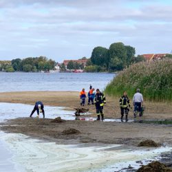 Bereits im vergangenen Jahr hatte Norbert Möller – er war wieder selbst dabei – zum Müllsammeln aufgerufen, der Erfolg war heute zu spüren. Denn am Kietz mussten die Transporter des Bauhofes noch im vergangenen Jahr unentwegt touren, in diesem Jahr fanden die Helfer weitaus weniger Dreck in der Müritz.