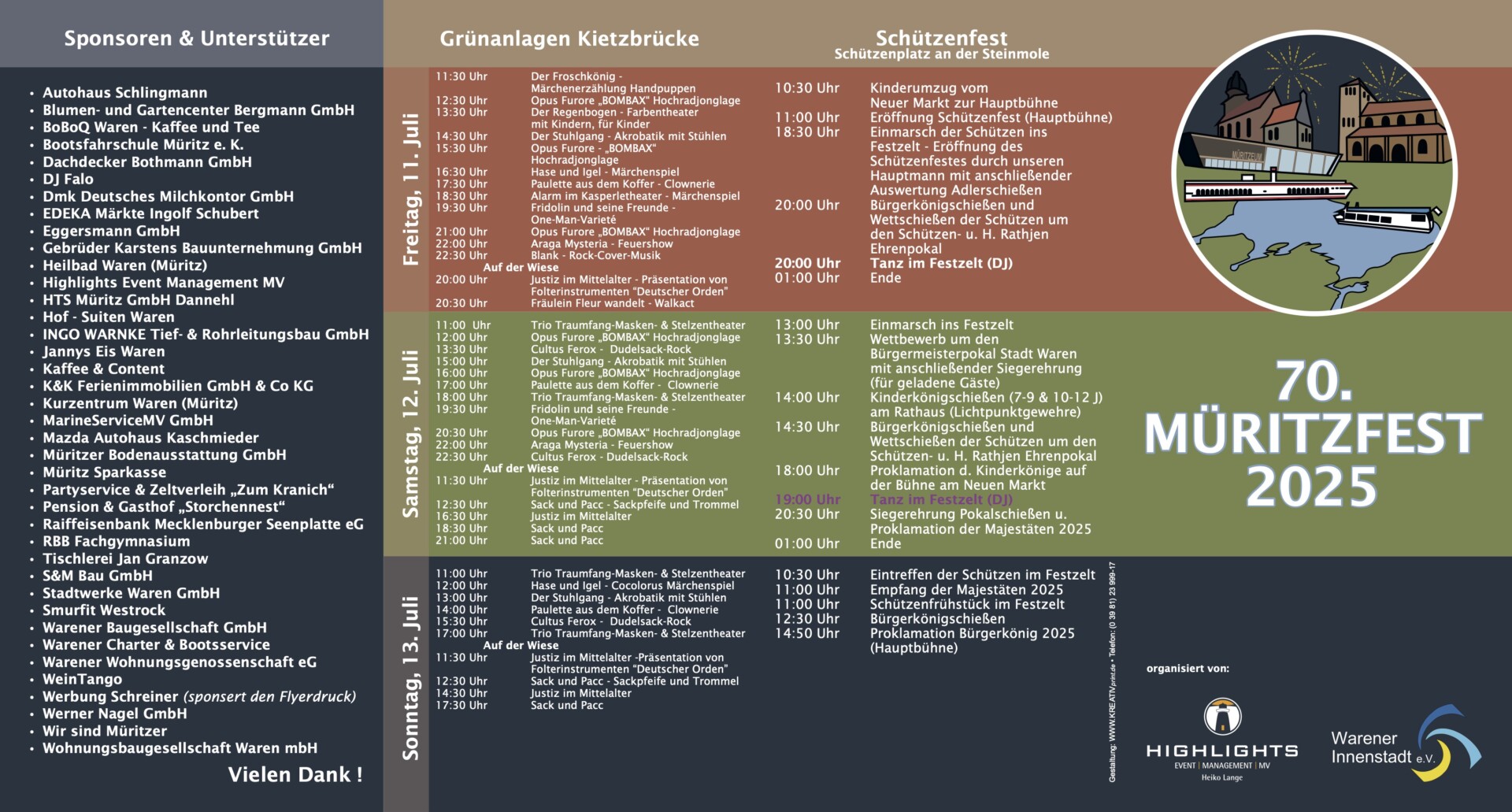 Ausschlaggebend für den Innenstadtverein, die Organisation zu übernehmen, waren die letzten Jahre, in denen das Müritzfest nur wenig mit Waren zu tun hatten. Und so starteten die ersten Planungen schon im September 2024. Die Mitglieder sammelten Ideen, kämpften sich durch Behördenauflagen, erstellten ein Sicherheitskonzept, und, und, und. Es gab sogar so viele Ideen, dass sie in diesem Jahr noch nicht alle umgesetzt werden können.