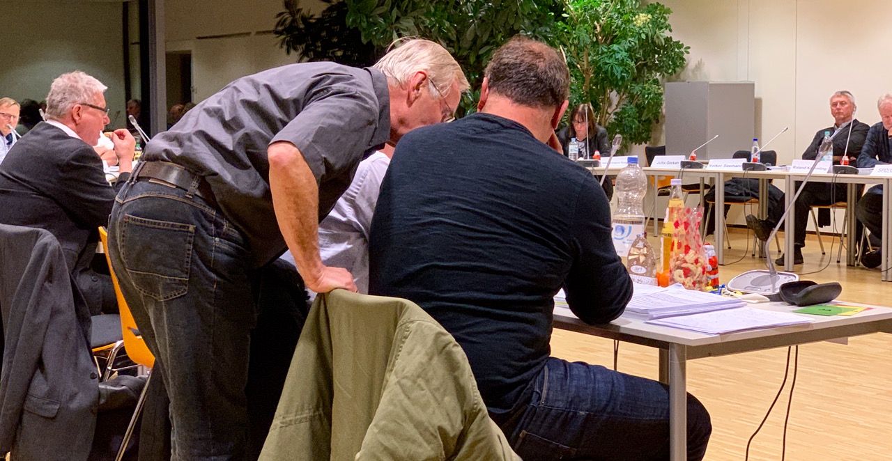 Foto im Text: Schnell noch Absprachen in der Sitzung: Jürgen Seidel und Ralf Spohr
