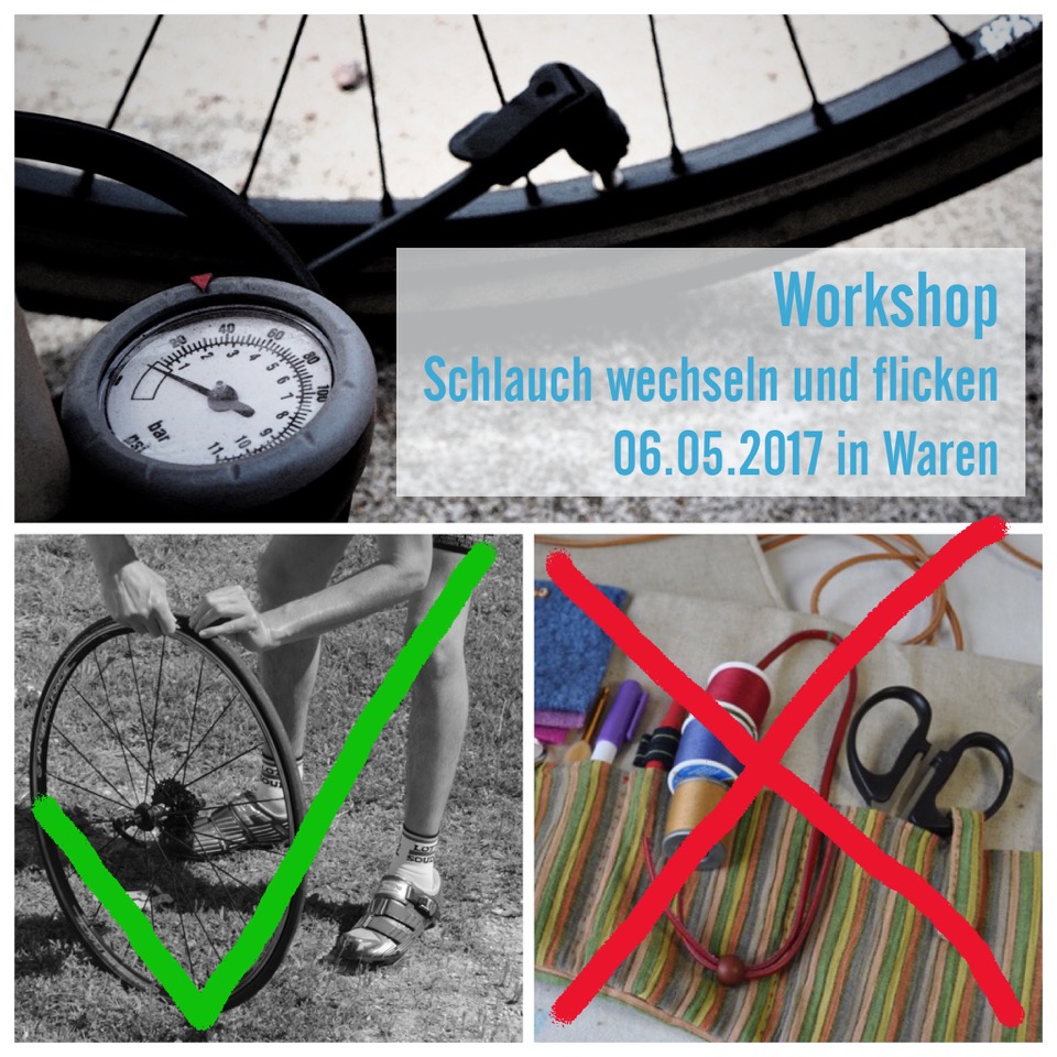 Die Organisatoren der Mecklenburger Seenrunde und das Warener Fahrradhaus Hinrichs bieten am 6. Mai ab 13 Uhr einen Workshop „Schlauchwechsel und Flicken“ an.