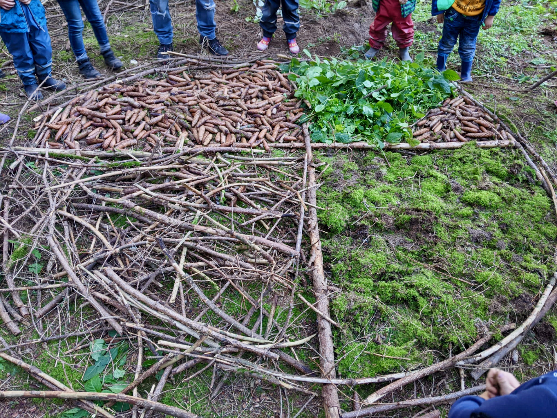01Nach dem gemeinsamen Frühstück zogen alle Gruppen durch den Wald. Es hieß: entdecken, forschen, bauen, klettern, lernen, sammeln, beobachten und leise zu sein. Die Natur bietet alle diese Möglichkeiten – ohne viel Material – und fördert die Fantasie und Kreativität der Kinder: Der Stock wird ein individuelles Allzweckwerkzeug, die Wurzellöcher werden zu Weitsprunggruben, umgekippte Bäume werden zu einem Klettergerüst, alte Bäume werden ein Forscherort, um Tier zu entdecken, der Waldboden ist ein Hindernisparcours mit Löchern, Stolperfallen und Tierspuren.