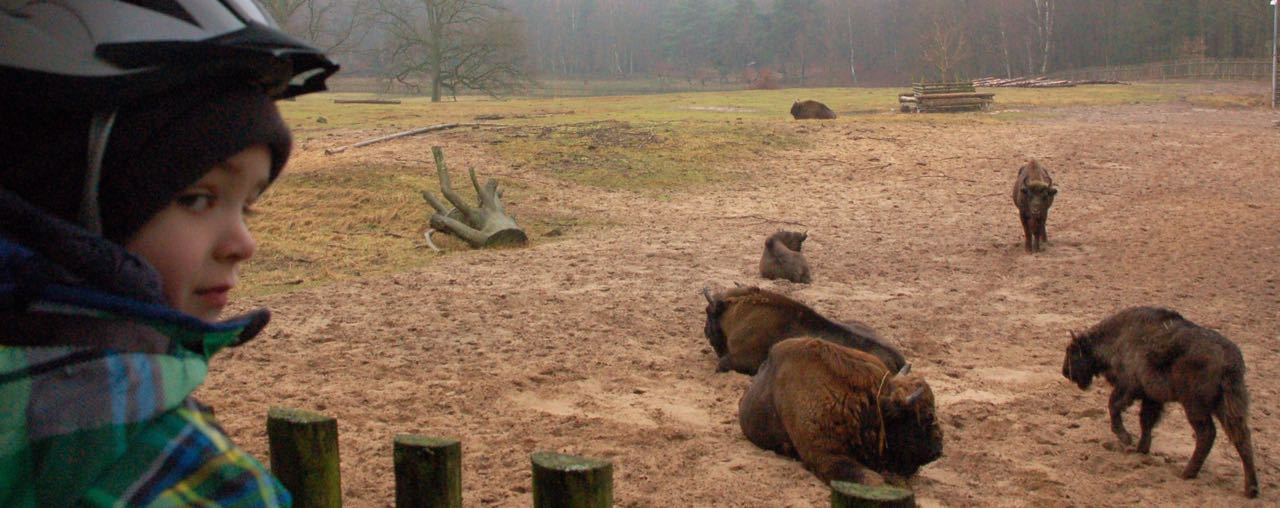 Spatzen picken Futterreste weg, Spechte hämmern an Bäumen, Kraniche trompeten und Buchfinken zwitschern – während die Wisente träge im Gatter liegen. Es ist eine Stunde nach der Futterzeit – da ist „Ruhe angesagt.“ Auf der Halbinsel Damerower Werder scheint bei diesen sonnigen Temperaturen trotzdem langsam der Frühling auszubrechen.
