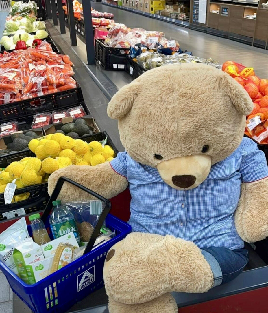 Er wurde zum Glück auf der Fusion gefunden, sieht aber nicht mehr so aus wie vorher. Er trägt jetzt nämlich Tattoos. Wir hoffen einfach mal, dass er Spaß hatte. Seine „Ladenmutter“ Anja ist jedenfalls froh, dass er wieder da ist und hat ihn nun sicherheitshalber im Einkaufswagen angeschnallt. Seine Tattoos darf er erst einmal behalten.