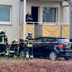 Ungewöhnlicher Unfall heute früh in der Röbeler Chaussee in Waren: Eine 35 Jahre alte Autofahrerin ist aus bislang nicht geklärter Ursache mit ihrem Seat von der Straße abgekommen, fuhr über einen Gehweg sowie eine Hecke und krachte unter einen Balkon. Nach ersten Informationen der Polizei erlitt die Frau dabei leichte Verletzungen und wurde ins Müritz-Klinikum gebracht. Im Einsatz waren neben Rettungsdienst und Polizei auch Warens Feuerwehrleute. Der entstandene Schaden wird auf mindestens 6000 Euro geschätzt.