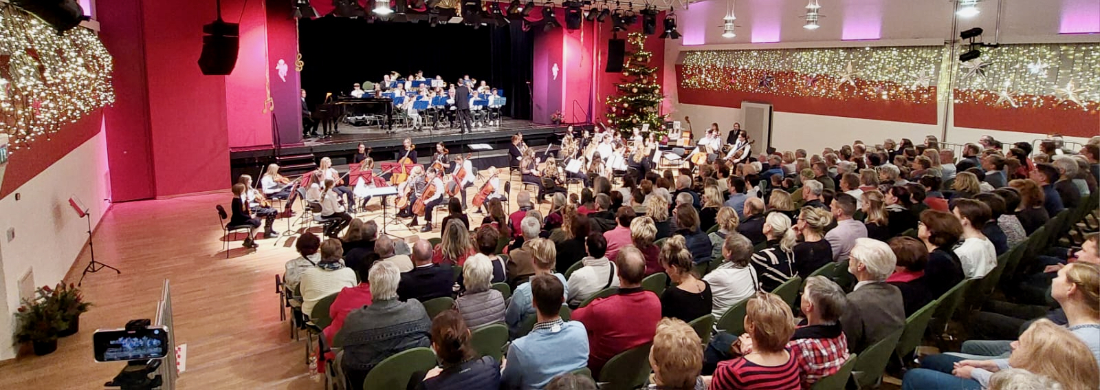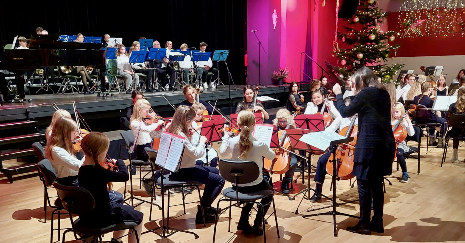 Das Publikum feierte die etwa 80 jungen Musiker in ihren unterschiedlichen Ensembles. Am Ende sangen die Zuschauer wieder mit bei „Alle Jahre wieder“ und „Vorfreude, schönste Freude“ – bevor es hinaus in die winterliche Schneelandschaft ging.