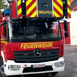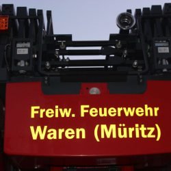 Endlich angekommen: Heute Abend ist Warens neue Drehleiter auf den Feuerwehrhof in der Goethestraße gerollt. Vier Mitglieder Wehr haben sie aus Karlsruhe, wo sie hergestellt wurde abgeholt und dort natürlich auch eine intensive Einweisung erfahren. Denn die „Neue“ im Fuhrpark der Warener Wehr – sie kostet mehr als 600 000 Euro – kann viel mehr als ihre Vorgängerin. Unter anderem hat sie einen abknickbaren Korb und kann bis zu fünf Leute aufnehmen. Hier unser Video und Fotos: