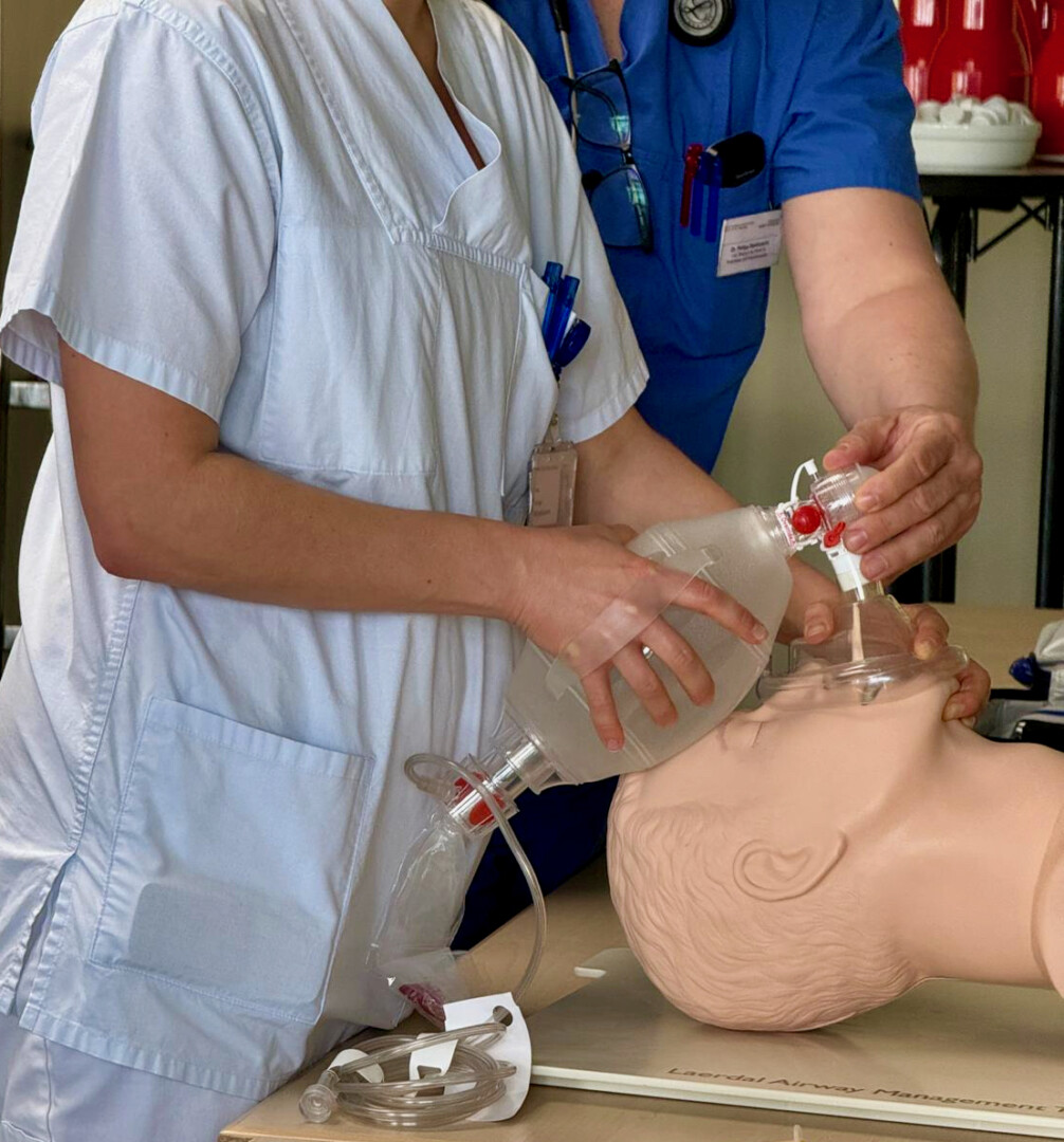 Das Ziel der Fortbildung in dieser Woche war es, die Mitarbeiter – ärztliches und pflegerisches Personal– mit den aktuellen Reanimations-Leitlinien vertraut zu machen und die notwendigen Maßnahmen an entsprechenden Phantomen zu üben. „In dem Wissen, dass eine Reanimation immer eine Teamleistung ist, sind gemeinsame Trainings der Beteiligten von unschätzbarem Wert. Das Üben im Team und in einem geschützten Raum soll sicherstellen, dass jedes Teammitglied seine eigenen Aufgaben – aber auch die seines Nachbarn bzw. Gegenübers – kennt und umsetzen kann“, erläutert der Chefarzt.