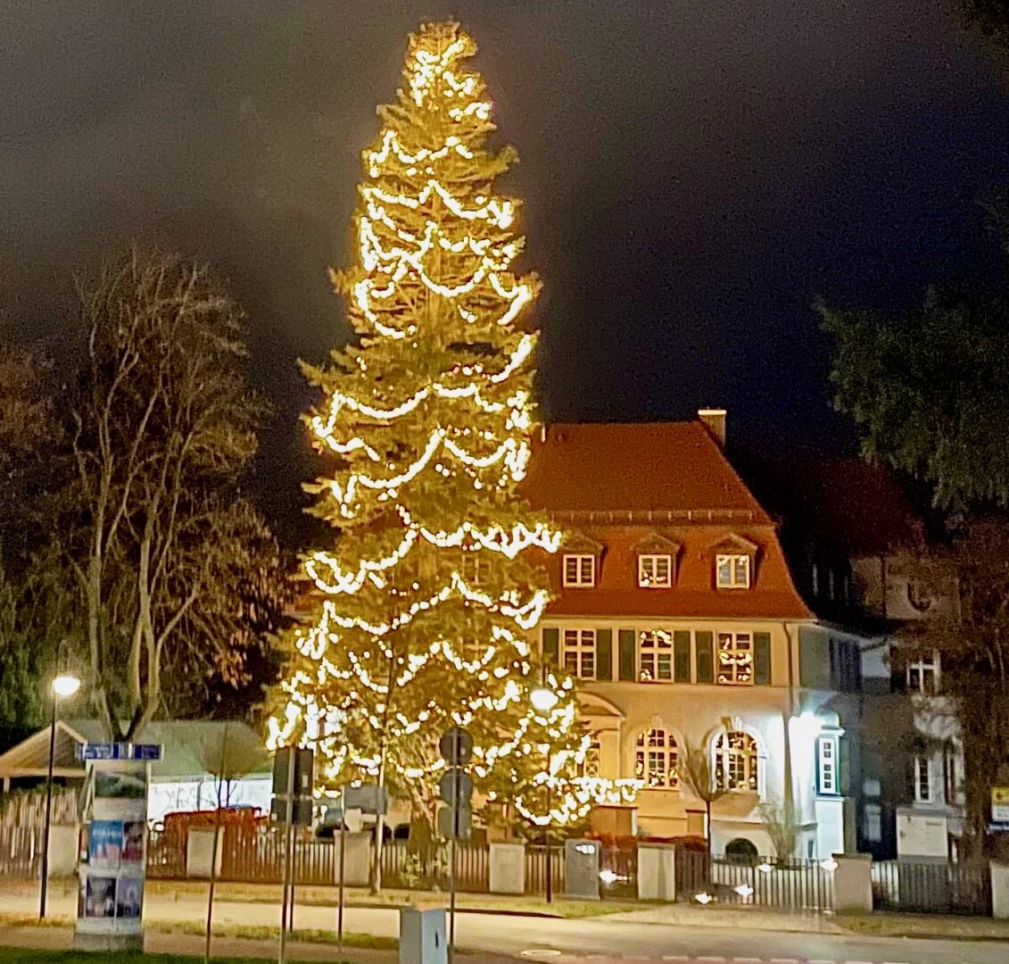 Auch heute Abend wieder ein stimmungsvolles, weihnachtliches Bild. Der geschmückte Baum in der Specker Straße in Waren erfreut seit vielen Jahren Passanten und Autofahrer. Auch in diesem Dezember – ganz ohne Schnee.