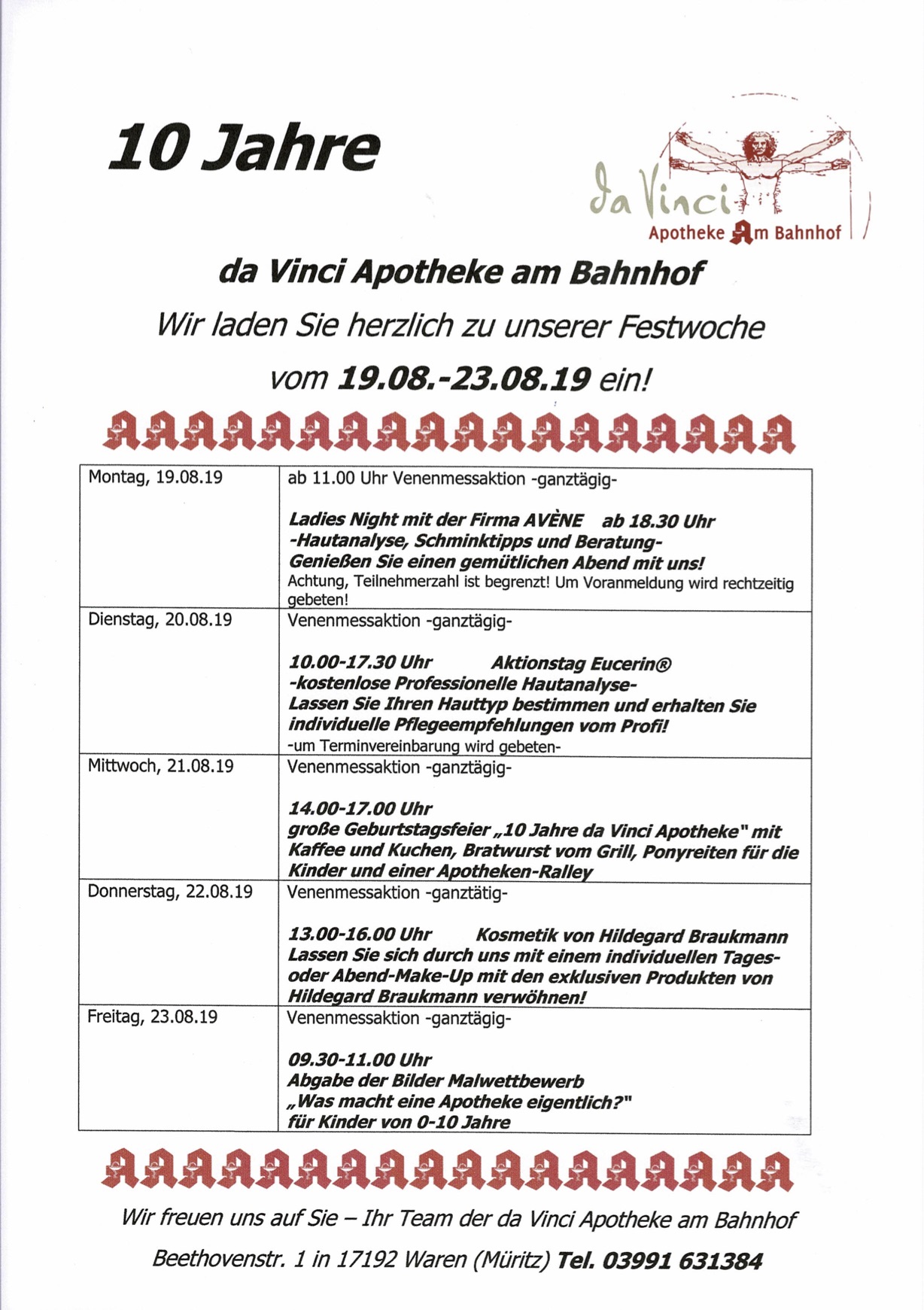 Und hier das abwechslungsreiche Programm für die Festwoche der „da Vinci“-Apotheke: