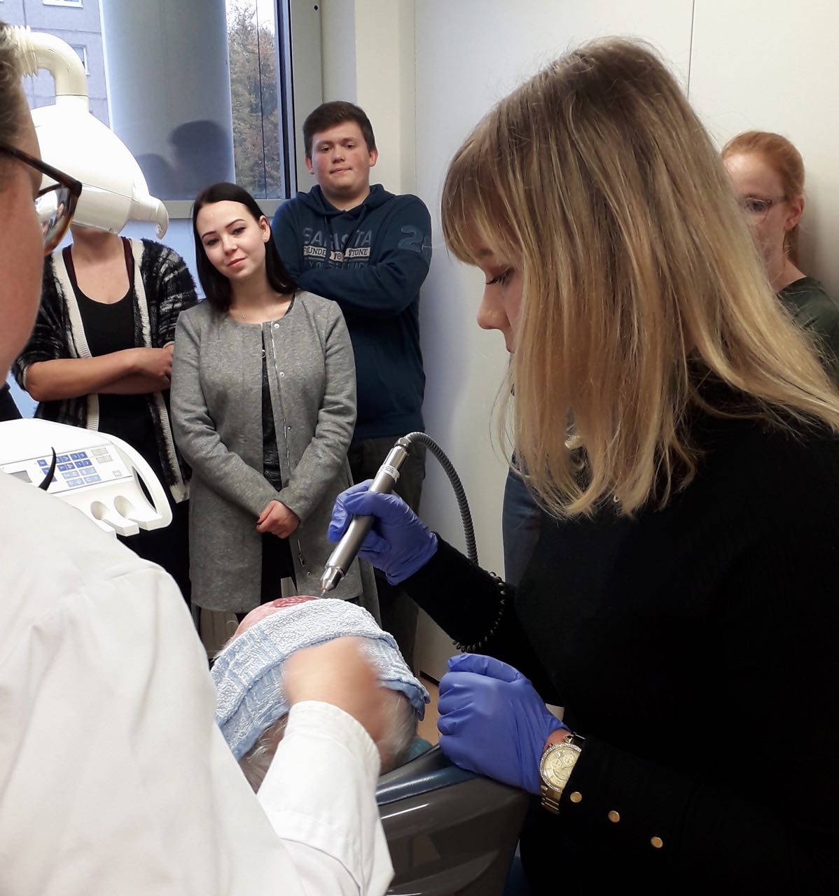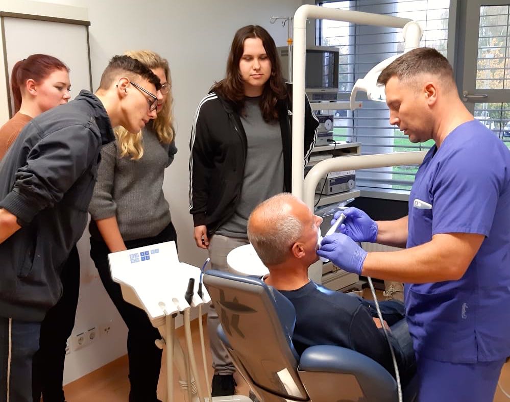 In der Ambulanz der Klinik für Mund-Kiefer-Gesichtschirurgie/ Plastische Operationen der Universitätsmedizin Greifswald fand unter der Leitung von Frau Dr. Witzke und Dr. Seebauer die klinische Demonstration statt. Die plasmaunterstützte Wundversorgung wurde an Patienten demonstriert, und die angehenden Pflegefachpersonen durften selbst mit dem Plasmagerät arbeiten. Die Teilnehmer konnten sich so von der Wirkung der plasmamedizinischen Wundversorgung überzeugen. Besonders beeindruckt waren sie von der keimabtötenden Wirkung des Plasmas, wodurch eine schnellere Wundheilung erreicht werden kann.