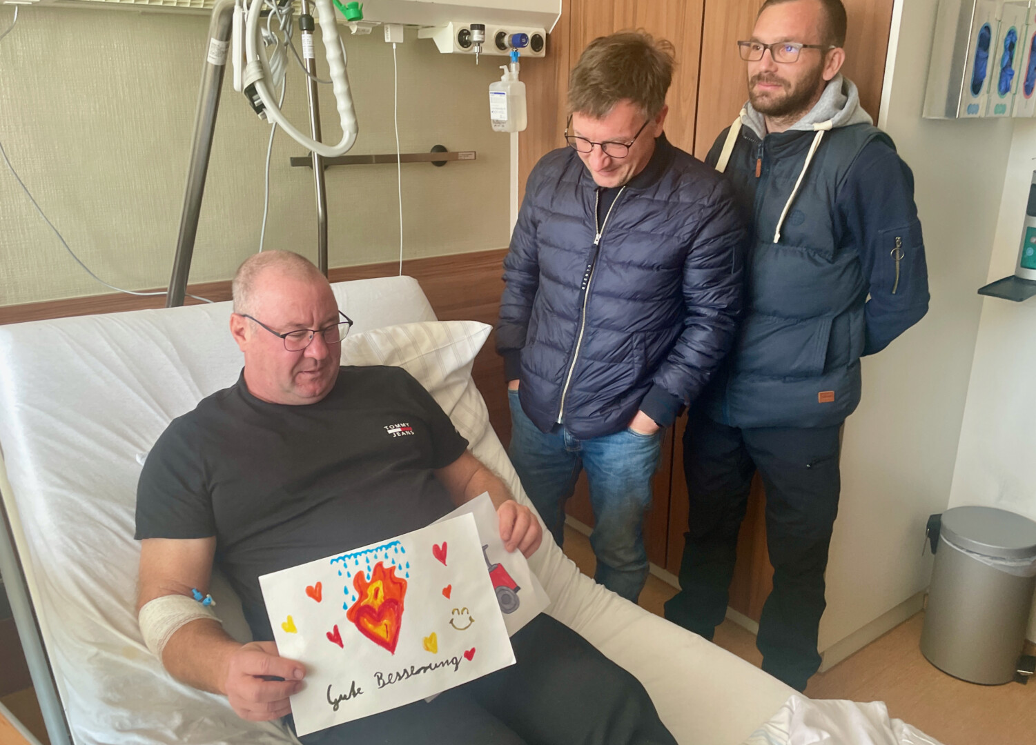 Zu den Besuchern gehörten gestern auch Feuerwehrchef Reimond Kamrath, Einsatzleiter Christian Hammer sowie weitere Kameraden. Einer von ihnen ist sogar aus Kiel angereist. Es sind emotionale Gespräche in Zimmer 12. Denn sie alle wissen: Es hätte noch viel schlimmer kommen können. Und sie alle sind froh, dass Michael Hoppe wieder gesund wird. Sicherlich auch Dank der unwahrscheinlich schnellen Rettung durch seine Kameraden.
