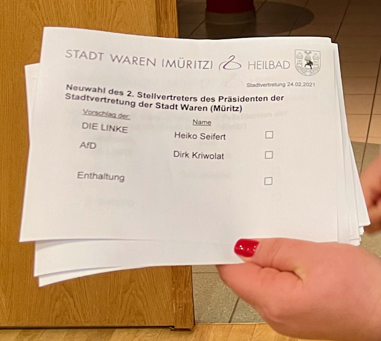 Dirk Kriwolat hat übrigens mit sieben Stimmen mehr Kreuzchen bekommen, als seine Fraktion ihm geben konnte, denn die AfD-Fraktion hat nur drei Mitglieder.