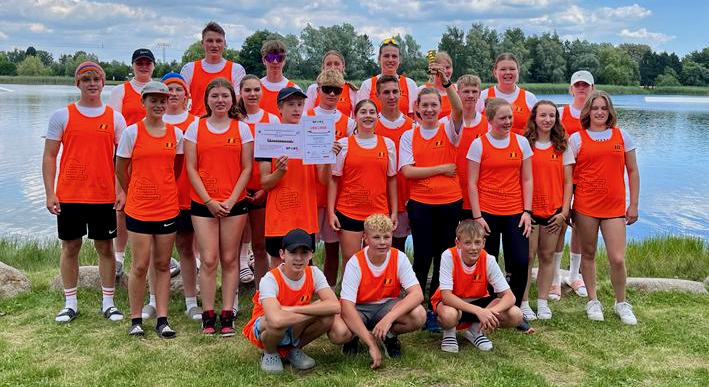 Zusammen mit Steuermann und Trainer Ingo Warnke vom ESV Waren entschieden die orangen Granaten vom Warener Gymnasium als jeweils zeitschnellste alle drei Rennen für sich und sicherten sich somit Platz 1 auf dem Treppchen.