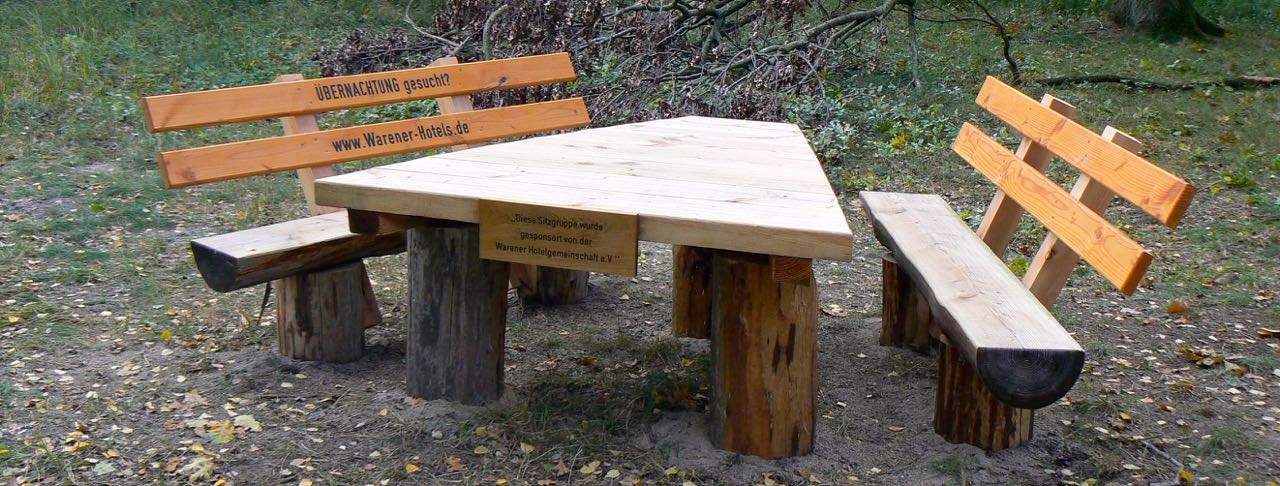 Im April dieses Jahres feierte die Waren Müritz Hotelgemeinschaft ihr 20jähriges Jubiläum (WsM berichtete). Die geladenen Gäste wurden gebteten, statt Blumen und Präsente mitzubringen, lieber für eine Holzsitzbankgruppe an der Feisneck zu spenden. Dieser Bitte kamen die Gäste großzügig nach, und so konnte dann auch noch mit einem Zuschuss der Hoteliers der Stadt Waren eine gemütliche Sitzgruppe im Wert von 1500 Euro aufgestellt werden.