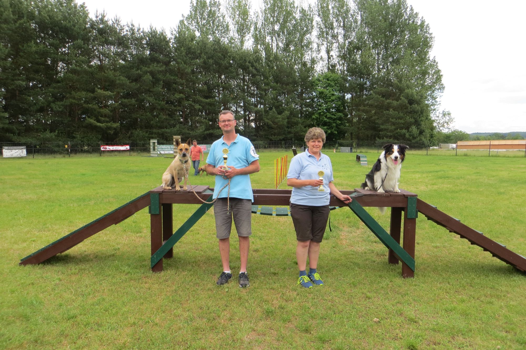 Die Hundesportler aus Waren konnten auch bei diesem Turnier vordere Plätze belegen. Neuling Sven Valeske gewann bei seiner zweiten Turnierteilnahme mit Happi den Siegerpokal in seiner Altersklasse. Regina Knuth konnte mit Jasper den Pokal für den zweiten Platz ihrer Klasse erringen(beide auf dem Foto rechts). Kathrin erreichte mit Spike den vierten und mit Kaja den siebten Platz, und Frank Leonhardt musste sich diesmal mit Lenny ebenfalls mit dem siebten Platz zufrieden geben.