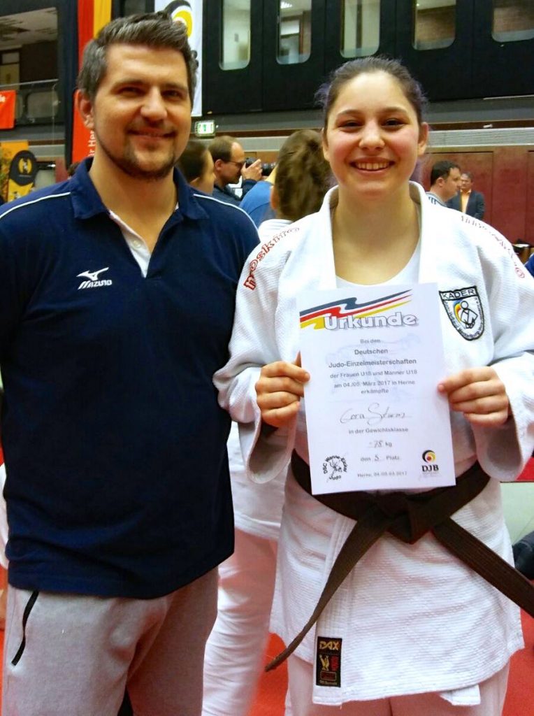 In einem Starterfeld von über 20 Teilnehmerinnen in der Gewichtsklasse bis 78 kg ergab die Auslosung, dass sie ihren Auftaktkampf gegen Lea Schmid aus Heubach (Württemberg) antreten musste. Die spätere Deutsche Meisterin ließ Cora keine Chance und versetzte der Motivation der SKV-Sportlerin einen starken Dämpfer.