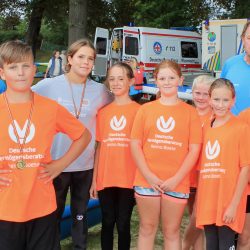 Aber die vielen Neulinge fügten sich sehr schnell ins Team ein, die erfahrenen Starter, wie Pia, (die große) Lilli, Bo oder Leo halfen. Mit Janina fand sich eine ehemalige Aktive des Vereins, die die „Kleinen“ zum Start brachte. Und so konnten Jonas, Vincent, Tamara, (die kleine) Lilli, Polly und Neah gleich eine Menge lernen und dabei zeigen, wie gut sie schon waren. Leider fiel ein Junge kurzfristig durch Krankheit aus.