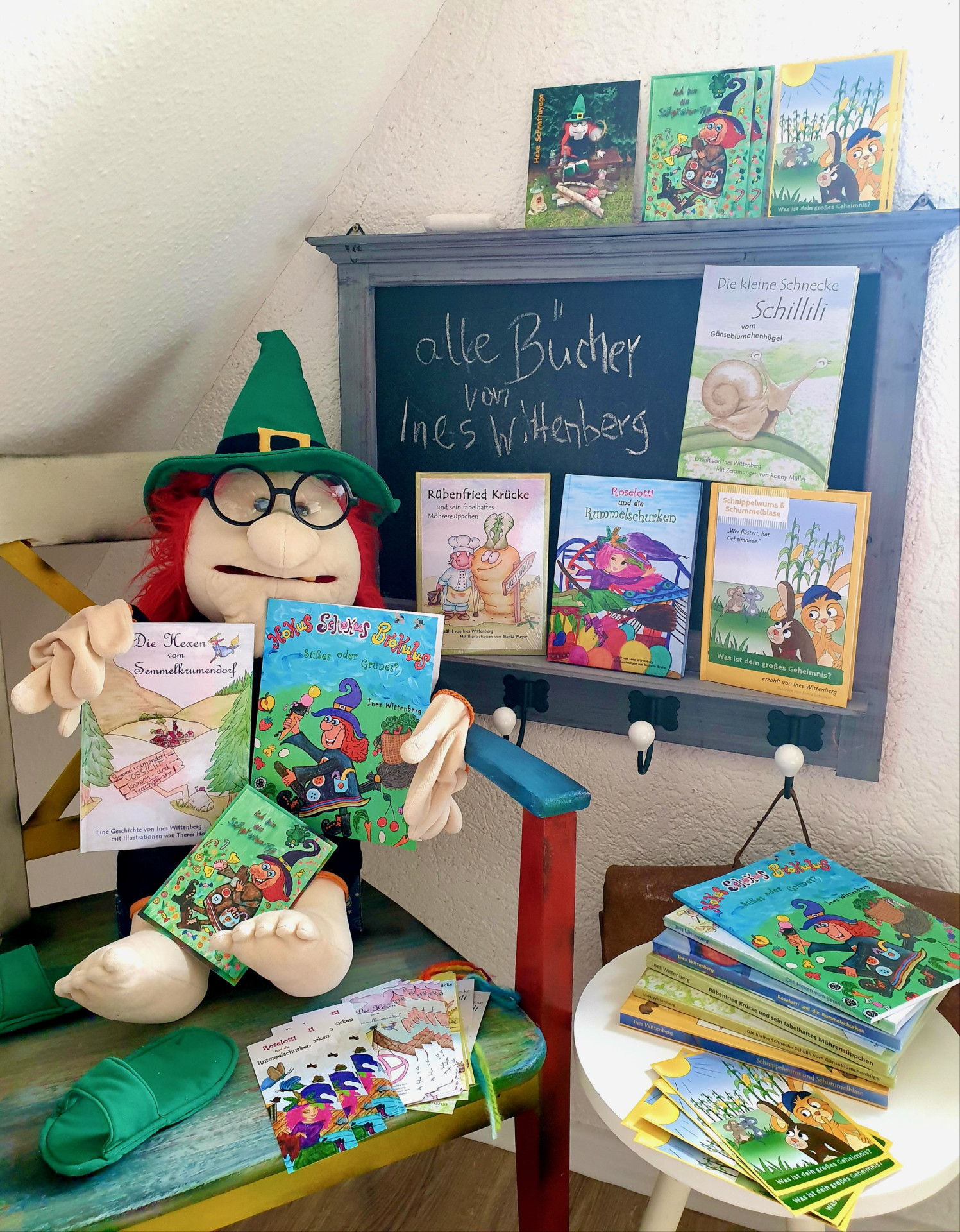 Traurig sind Ines Wittenberg und ihre redselige Hexe Schnattayaga darüber, dass sie schon solange keine Kinderbuch-Lesungen in Kitas und Schulen durchführen konnten.