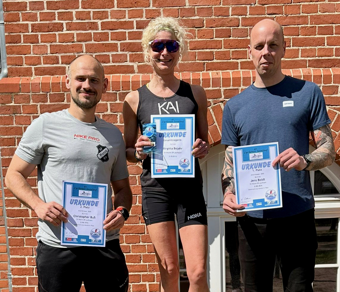 Respekt – zwei erste und einen zweiten Platz haben die Sportler des Laufteams des SV Waren 09 aus dem brandenburgischen Lychen mit zurück an die Müritz gebracht. Beim dortigen 41. Lychener Seenlauf holte die Warenerin Birgitta Bojahr am Wochenende über 15,5 Kilometer bei den Frauen den 1. Platz. In ihrer Altersklasse und in der Gesamtwertung. Jens Boldt landete über 30,5 Kilometer in seiner Altersklasse auf Platz eins und in der Gesamtwertung auf Rang neun. Christopher Buß nahm ebenfalls die 30,5 Kilometer unter die Füße, wurde in seiner Altersklasse zweiter und in der Gesamtwertung 8. „Die Strecke war sehr anspruchsvoll, die Veranstaltung mit 360 Teilnehmern wirklich super organisiert“, so Jens Boldt gegenüber „Wir sind Müritzer“.