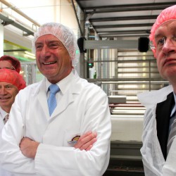 Den heutigen Startschuss für den Steinbackofen gab Arthur Fuchs (Foto links mit Geschäftsführer Günther Neumann) aus dem Schweriner Wirtschaftsministerium, schließlich hat seine Behörde auch einen kleinen Anteil an der Investition. Sowohl vom Land als auch von der EU flossen Fördermittel in das Warener Unternehmen, das gegenwärtig rund 520 Frauen und Männer, darunter 20 Auszubildende, beschäftigt.