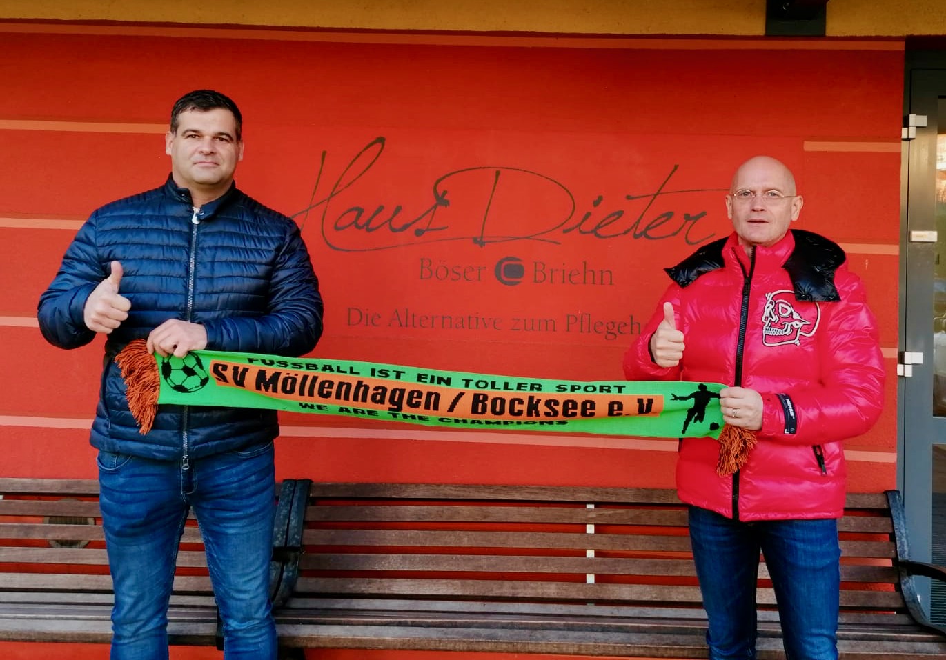 Große Freude herrschte vor kurzem beim SV Möllenhagen/Bocksee. Der Geschäftsführer der Böser & Briehn Pflege GmbH, Detlef Böser, überreichte Vorstandsmitglied Martin Groß eine großzügige Spende. Detlef Böser – selbst passionierter Sportler und aus Möllenhagen stammend – honoriert damit die Arbeit im Verein, der sich den Sportarten Fußball, Tischtennis, Volleyball und Kinderturnen verschrieben hat und wünscht dem Verein für die Umsetzung künftiger Vorhaben viel Erfolg. Auf diesem Wege bedankt sich der SV Möllenhagen/Bocksee noch einmal sehr herzlich bei Detlef Böser und seinem Team.