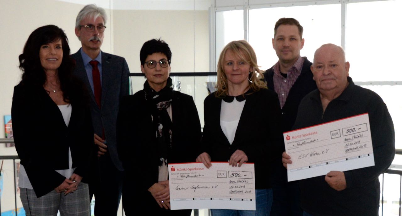 Im Beisein der Organisatoren und Hauptsponsoren wurden in der Stadtverwaltung je 500 Euro an den „Warener Seglerverein“ e. V. und den „ESV Waren“ e. V. für die Vereinsarbeit übergeben.