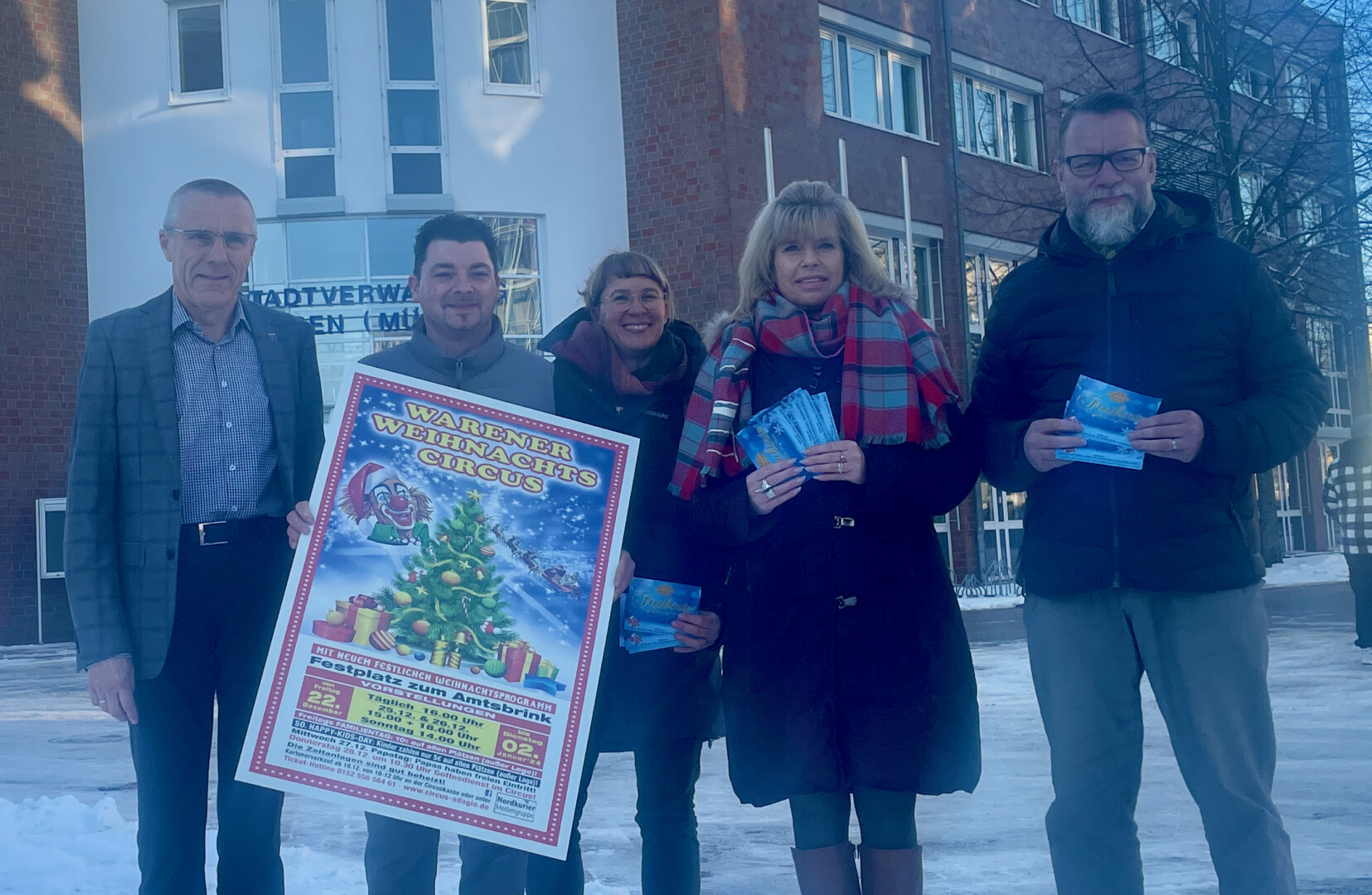 „Träumen und und staunen im 3. Warener Weihnachtscircus“ – unter diesem Motto lädt die Circusfamilie Ortmann in der Weihnachtszeit wieder in ihr Zelt am Warener Amtsbrink ein. Träumen und staunen können auch 150 Frauen, Männer und Kinder, die für die Vorstellungen eine Freikarte erhalten. Zirkuschef Roberto Ortmann hat in dieser Woche 150 Tickets an die Warener Tafel, die Beratungsstelle „Klara“ sowie die beiden Jugendclubs in Waren übergeben. Eine tolle Geste, die nicht selbstverständlich ist, zumal es Zirkus-Unternehmen seit einigen Jahren besonders schwer haben. Doch Roberto Ortmann war es nach eigenen Angaben ein Bedürfnis, anderen Menschen trotz der vielen eigenen Probleme eine Freude zu bereiten.
