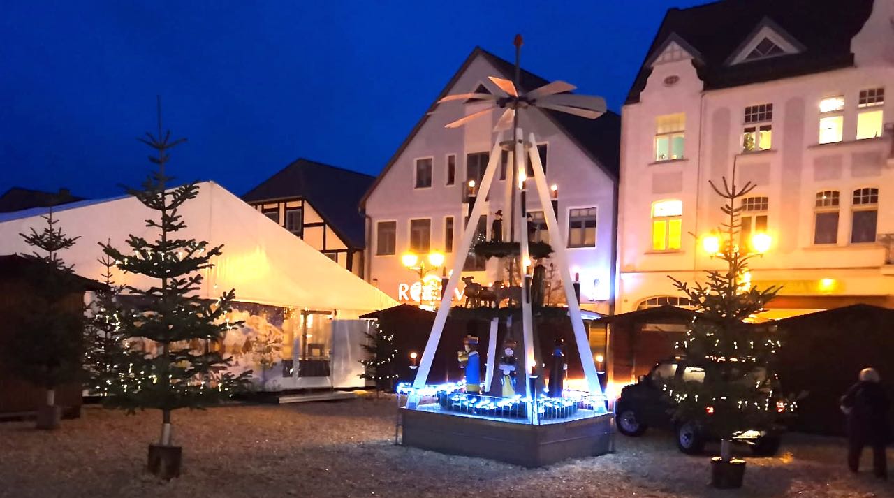 Da ist sie wieder, die so genannte Stini-Pyramide. Der Innenstadtverein hat sie mit Hilfe einer Finanzspritze der Stadt wieder auf Vordermann gebracht und präsentiert sie bereits jetzt auf dem Weihnachtsmarkt. Der wird zwar erst morgen eröffnet, doch aufgebaut ist schon alles. So ganz neu ist die Pyramide aber noch nicht, im kommenden Jahr, so Olaf Gaulke vom Innenstadtverein, soll der Unterbau, in dem sich ebenfalls die Holzwürmer wohlfühlen, erneuert werden.