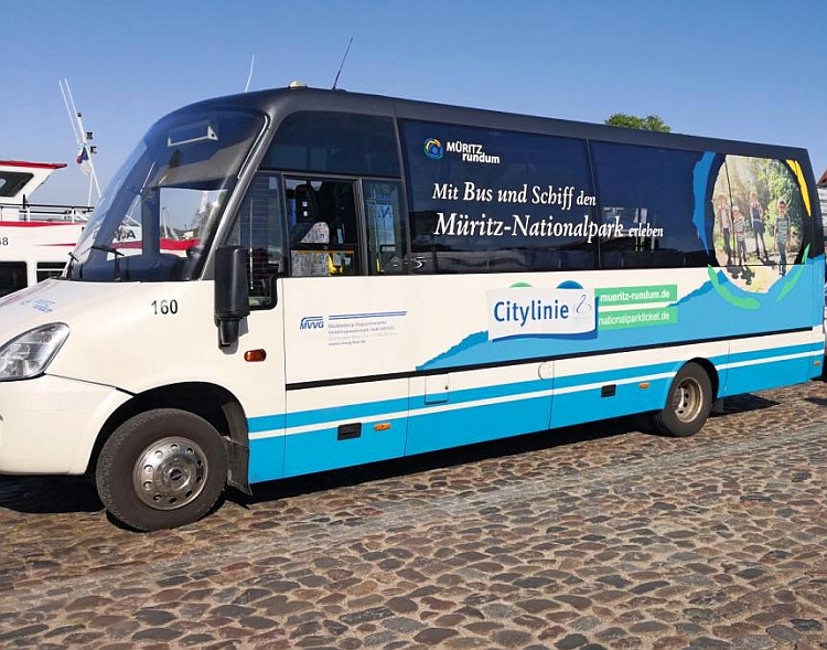 Der kleine Bus pendelt in der Saison täglich zwischen Amsee, Kamerun, Ecktannen, Hafen und dem Zentrum von Waren. Zudem hat die Citylinie eine direkte Anbindung an den Bahnhof, Anschluss an die Nationalparklinie (Linie 009) sowie an die Busse rund um die Müritz und in die Region. Da es sich um ein barrierefreies Modell handelt, können auch Rollstuhlfahrer bequem mitreisen.