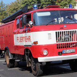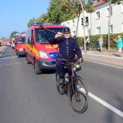 Von Anfang an säumten Zuschauer den Straßenrand und wurden nicht enttäuscht. Denn sie bekamen viel zu sehen: Feuerwehrtechnik sowie Ausrüstung von gestern und heute.