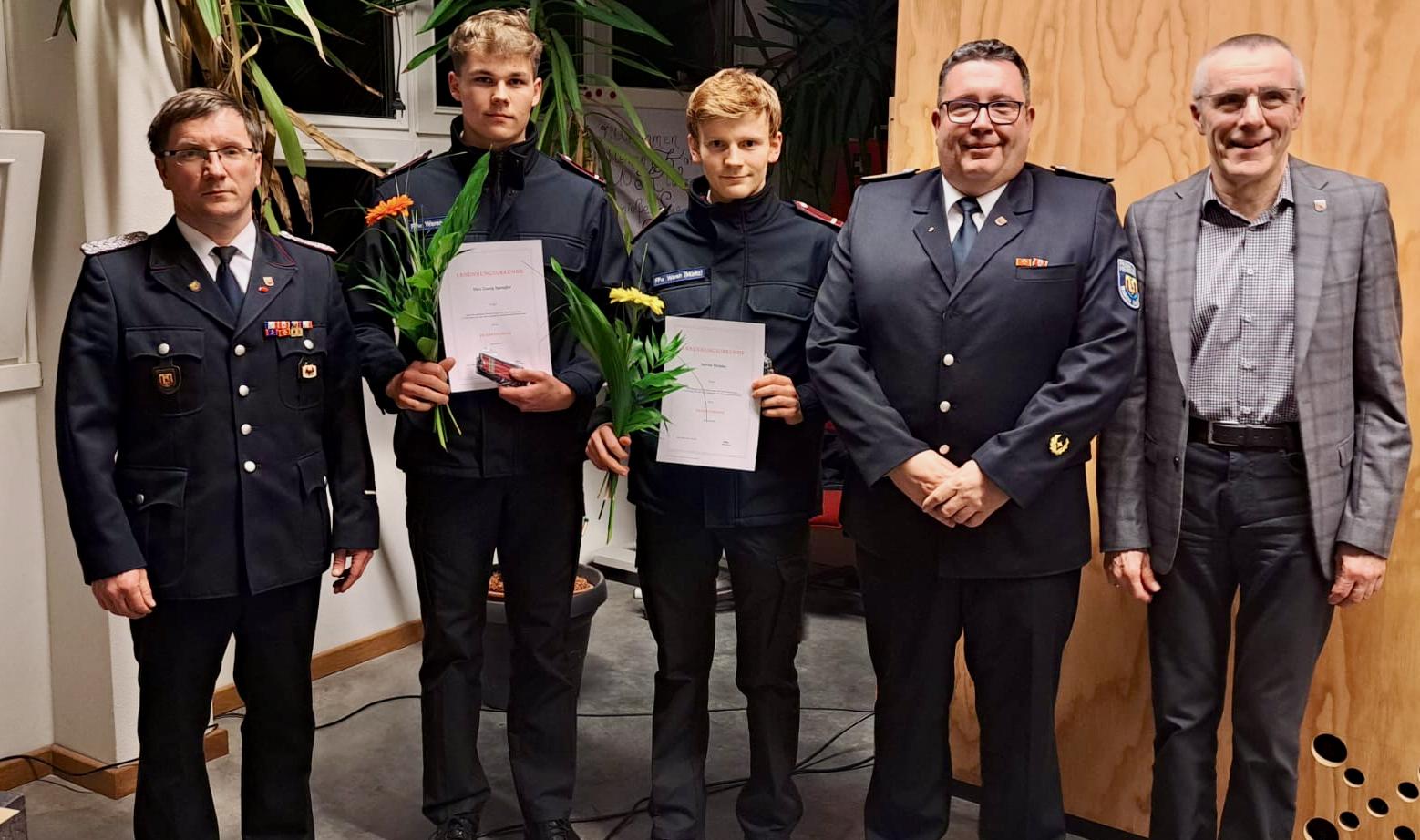 Zum Feuerwehrmann wurden Steven Meinke und Max Georg Spengler ernannt, zur Oberfeuerwehrfrau/-mann Alina Löhrke, Anna Paulke und Dennis Weiß und zum Hauptfeuerwehrmann Pascal Leinbaum.
