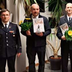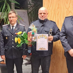 Für insgesamt 2000 Einsätze ehrten der Wehrführer und Bürgermeister Norbert Möller den Kameraden Andreas Kocik, für 1000 Einsätze wurden Stefan Hanisch und Denny Rosen ausgezeichnet.