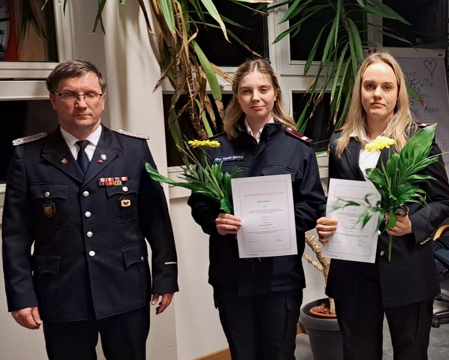 Zum Feuerwehrmann wurden Steven Meinke und Max Georg Spengler ernannt, zur Oberfeuerwehrfrau/-mann Alina Löhrke, Anna Paulke und Dennis Weiß und zum Hauptfeuerwehrmann Pascal Leinbaum.