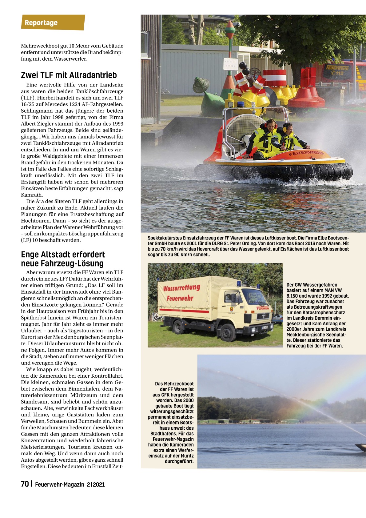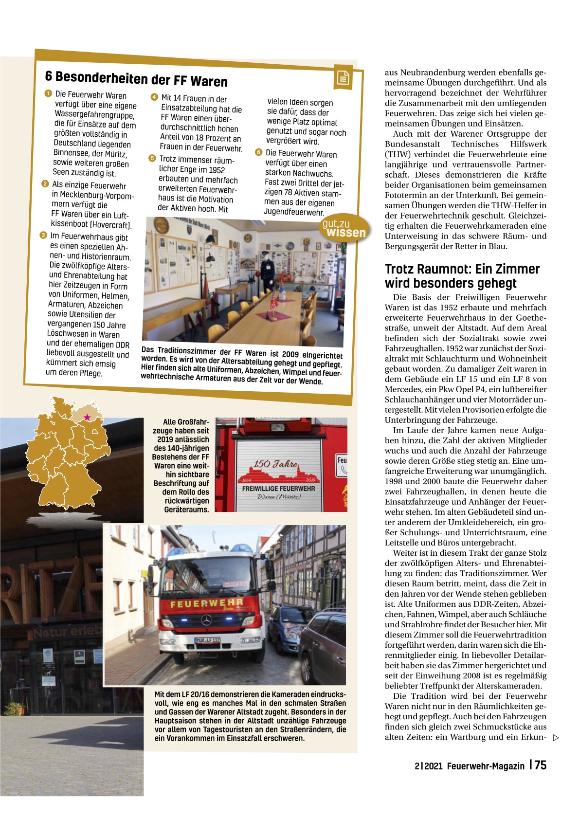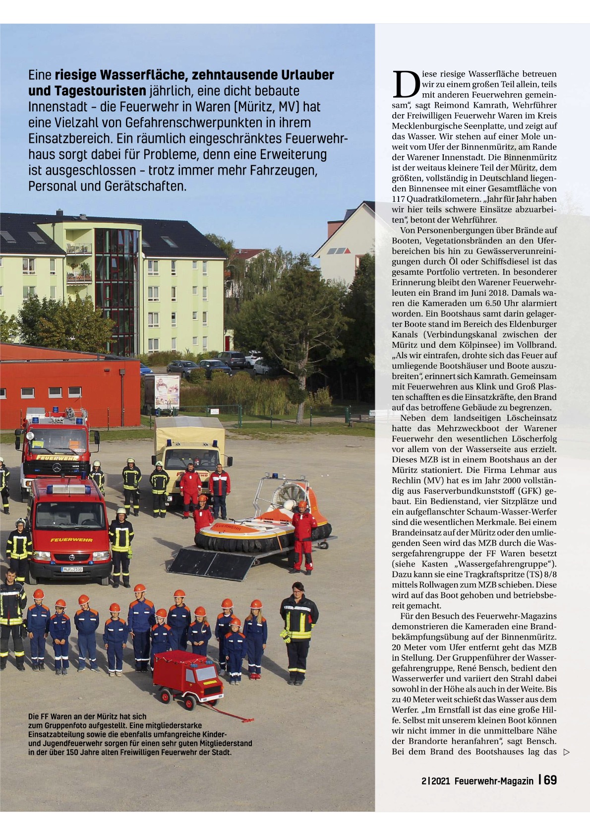 Darauf können Warens Feuerwehrleute zu Recht stolz sein: Das Feuerwehrmagazin mit derzeit rund 50 000 verkauften Exemplaren im Monat, berichtet auf 11 Seiten über die Feuerwehr der Müritzstadt. Zum Leserkreis der 1983 in Bremen gegründeten Fachzeitschrift gehören freiwillige und hauptberufliche Feuerwehrleute sowie viele Blaulichtfans.