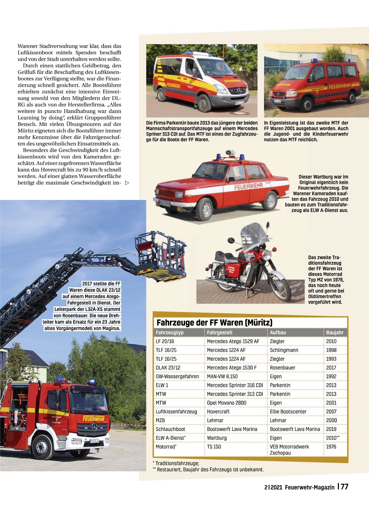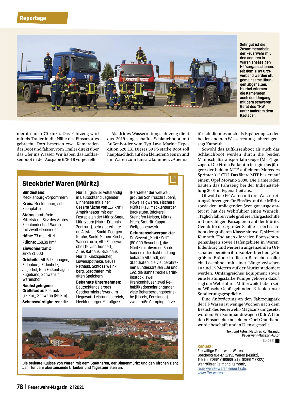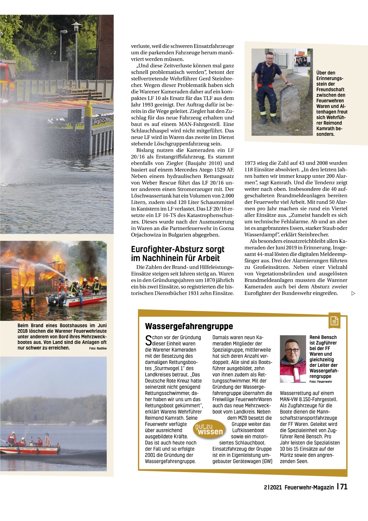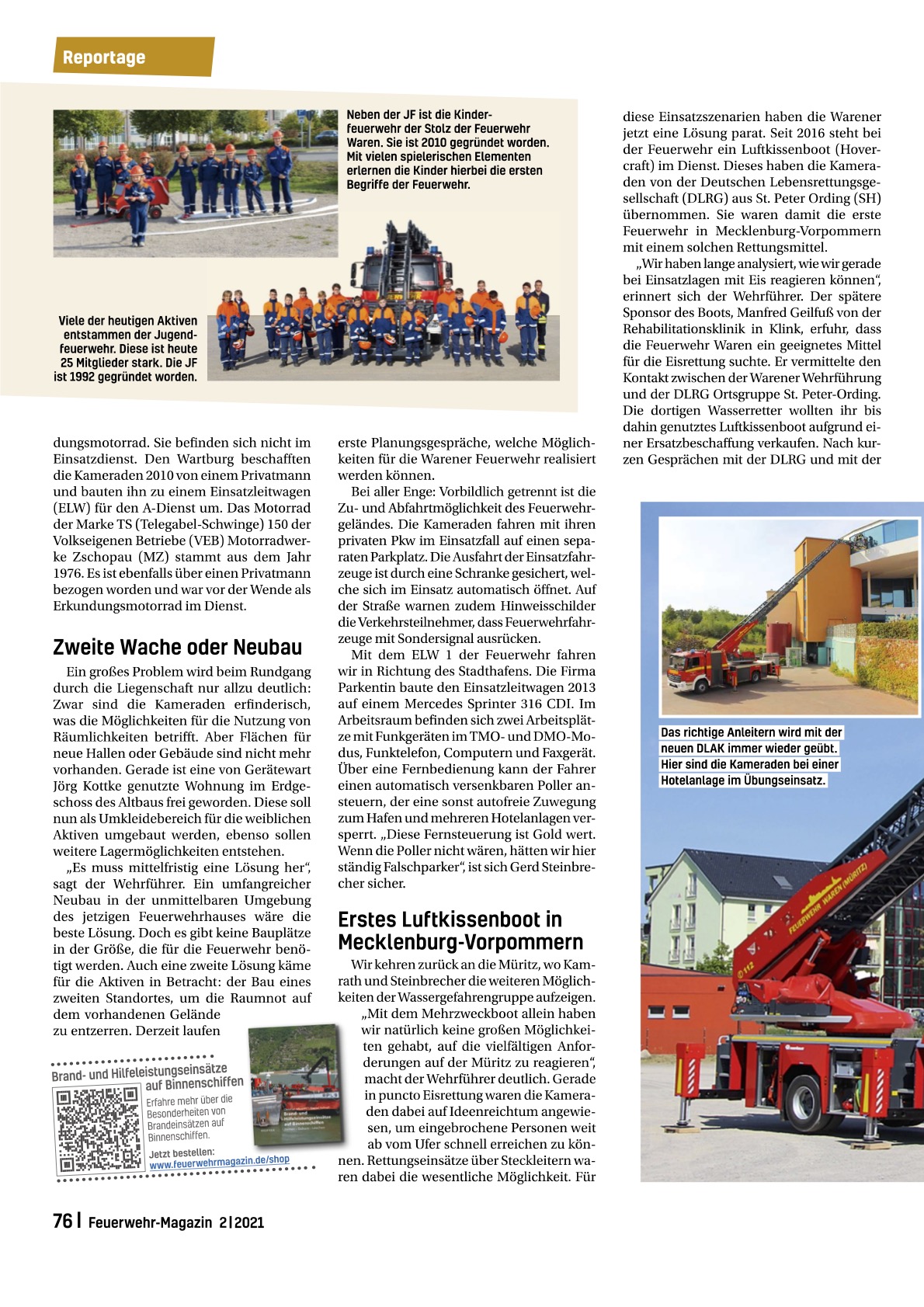 Darauf können Warens Feuerwehrleute zu Recht stolz sein: Das Feuerwehrmagazin mit derzeit rund 50 000 verkauften Exemplaren im Monat, berichtet auf 11 Seiten über die Feuerwehr der Müritzstadt. Zum Leserkreis der 1983 in Bremen gegründeten Fachzeitschrift gehören freiwillige und hauptberufliche Feuerwehrleute sowie viele Blaulichtfans.