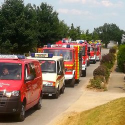 Anschießend ging es für die Warener nach Kargow. Dort feierte die Freiwillige Feuerwehr ihren 80. Geburtstag. Die Warener Kameraden begleiteten den Festumzug durch die Gemeinde und führten die Drehleiter vor.