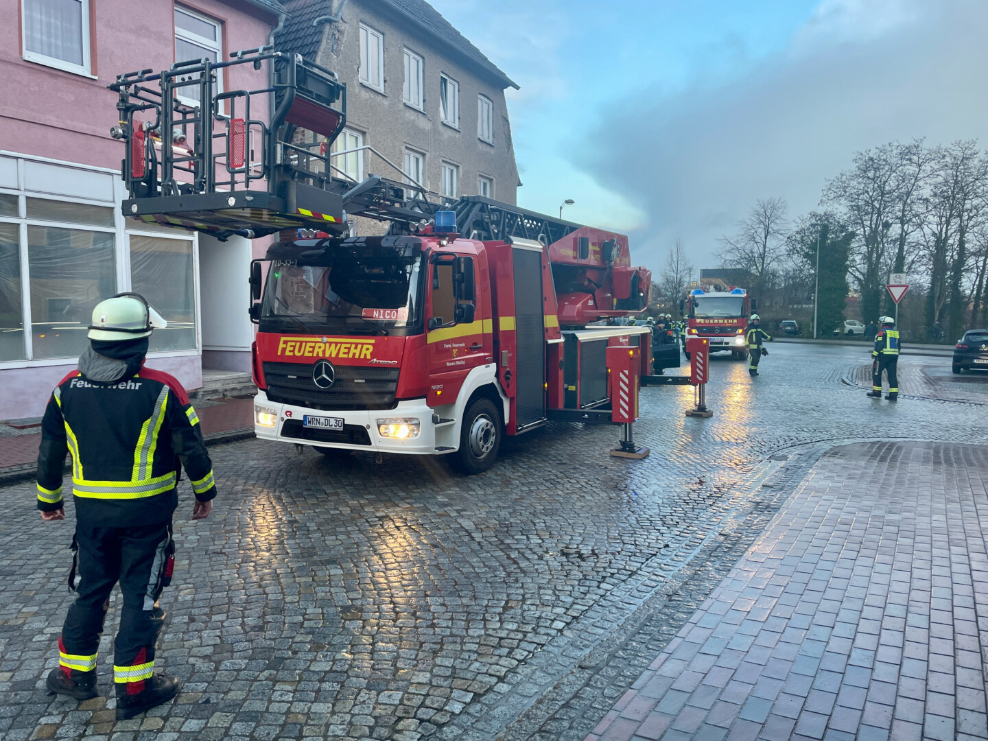 Warens Feuerwehrleute mussten heute Abend in die Innenstadt ausrücken. Aus einem seit längerem leer stehenden Gebäude soll Rauch aufgestiegen sein, wie es hieß. Doch der Einsatz entpuppte sich als Fehlarm. Kein Feuer – kein Rauch.