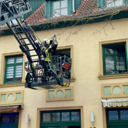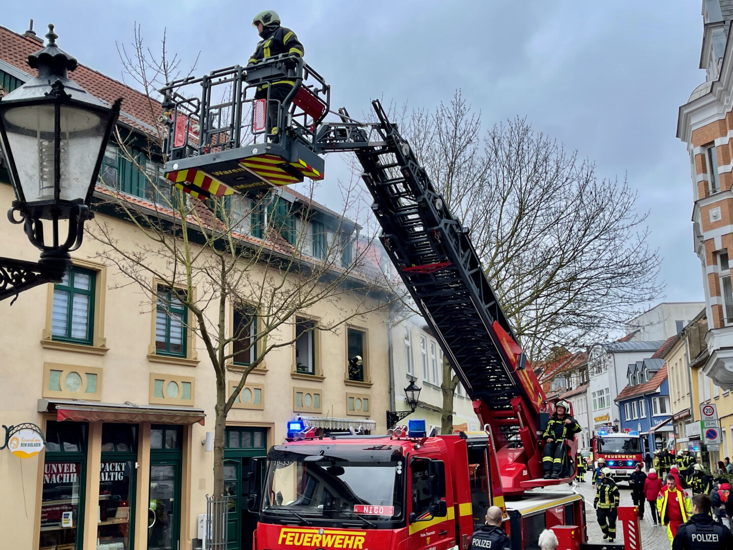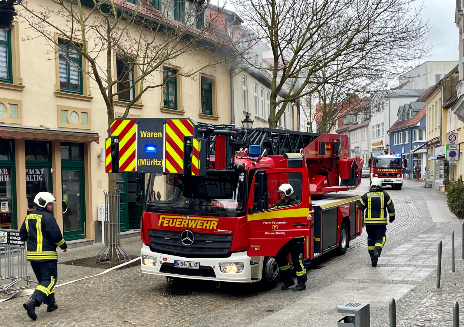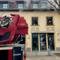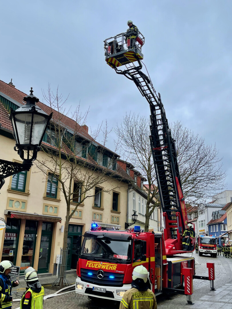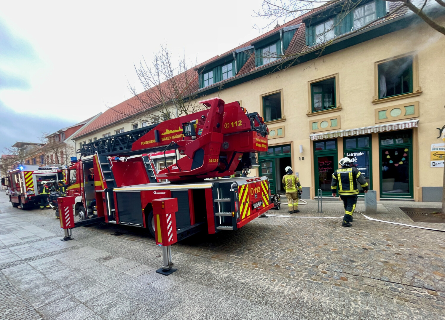 Schreck heute Mittag in der Warener Altstadt: In einer Wohnung über dem Fair-Trade-Café in der Friedensstraße schrillte eine Rauchmelder, Qualm drang aus den Fenstern. Ersten Informationen zufolge brannte es in der Küche der Wohnung.