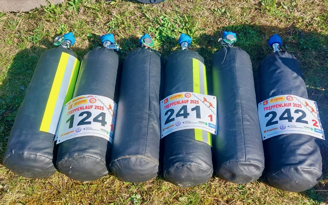 Das sind unsere Warener Helden: Die sechs Feuerwehrleute Malte Haack (18), Steven Meincke (19), Lucas Zimmermann (21), Max Spengler (19), Carl Jacob Drese (18) und Feuerwehrchef Reimond Kamrath (48) haben heute beim Treppenlauf der Wehren in Oberhof allesamt die 701 Stufen auf die Schanze hinauf in unter zehn Minuten geschafft. Und zwar in Feuerwehrkluft und mit 30 Kilo auf dem Rücken. Nach wochenlangem Training klappte heute vor Ort einfach alles. Denn die Retter, die in Zweier-Team starteten, mussten nicht nur oben angekommen, sondern am Ende auch noch Luft in der Flasche haben.